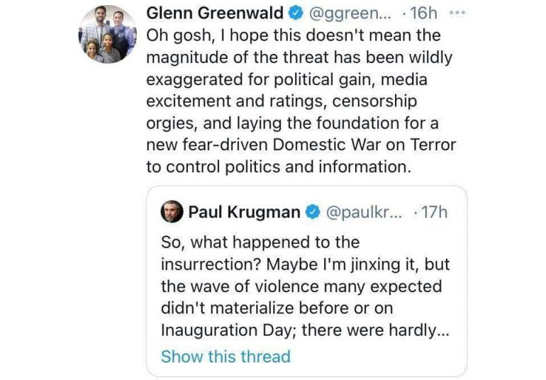I respect Glenn Greenwald. Even though he would call himself a liberal, he has the integrity to challenge the Democrats’ precious Narrative.