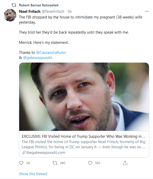 The FBI sat on its hands as our cities burned last year and BLM and Anifa rioters caused billions of dollars in damage, with dozens of murdered. The few reluctant and perfunctory actions they took were at the repeated orders of President Trump, and FBI agents seen taking the BLM knee last year in DC accurately reflected what they thought of those orders. In the wake of the Capitol Hill Riot they are going gang busters against people, the vast majority of whom, at worst, would be facing misdemeanor charges.