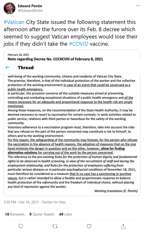 The above non-statement statement, which in no way alters the Vatican policy to their workers of you will get the vaccine or be canned, puts to mind, as does so many cya statements of this kidney stone of a pontificate, the following passage from Isaac Asimov’s Foundation series: