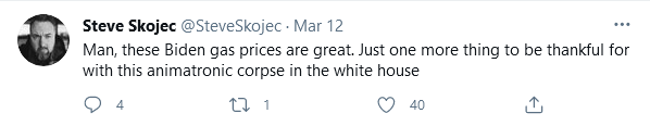Now, hugely inflationary WH EO’s, fake COVID Welfare Act; policies to reduce fossil supply supplies, and etc. had ‘no’ effect on skyrocketing energy prices – of course: ninety-nine percent of everything out of the media is a lie. The remainder is simply erroneous.