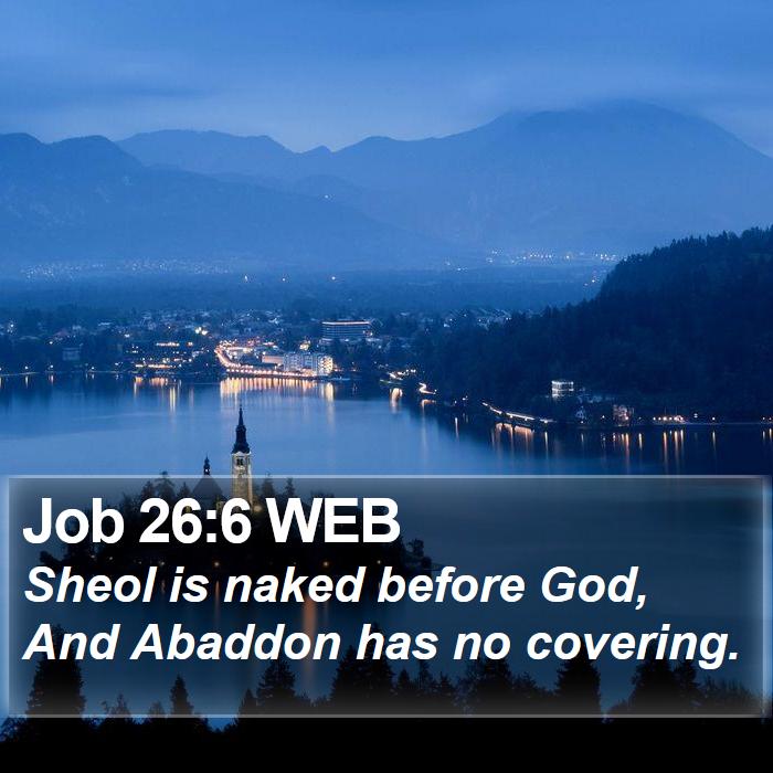 One should not believe that divine providence extends only to judging men in this life, and not after death, as the friends of Job seemed to think. To disprove this he then says, “Hell is naked before him,” as if to say: The things which happen in hell are clearly seen by him and happen according to his judgment. To explain this he then says, “and there is no hiding place for perdition,” so that those who have perished in hell can be hidden from the eyes of God as they are hidden from our eyes.