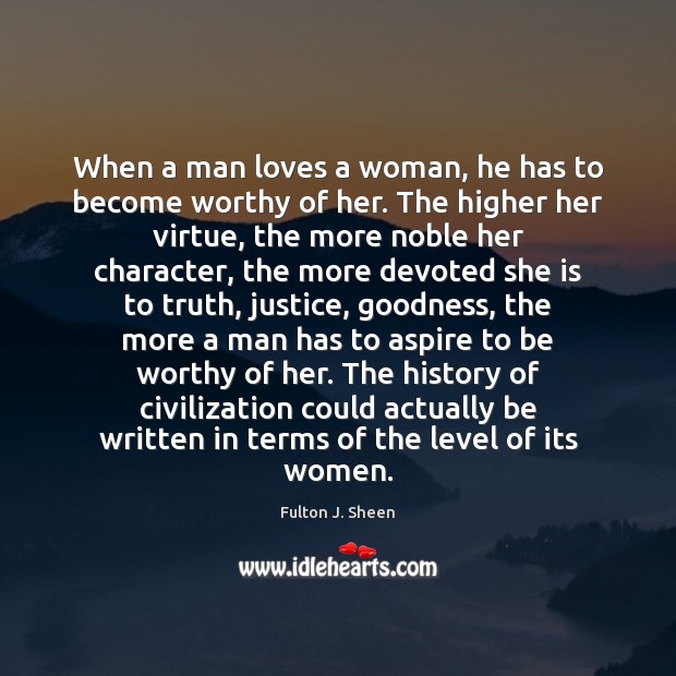 Blessed Archbishop Fulton Sheen has clearly explained the importance of working towards that goal by man wishing to please the only woman in history who perfectly embodies the virtues in their entirety. While pondering the quote provided, one can see the goal achieved in the Saints. Aspiring to be worthy of the greatest woman who ever walked on earth.