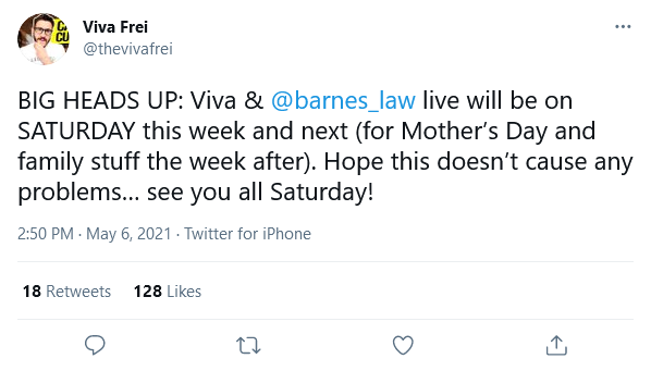 Today:Â May 8, 2020 at 6:00 PM CT.
