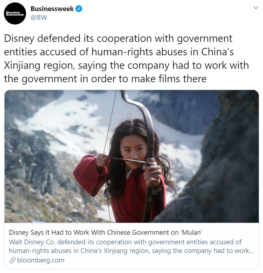As I told @TuckerCarlson: Disney's white male executives patronize their hourly-wage workers with "white privilege" checklists and "equality of outcomes" lectures, while they build their personal fortunes with the Chinese Communist slave-state.pic.twitter.com/EfjEQjyU3M