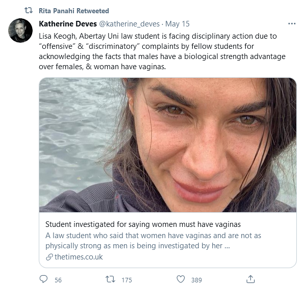 The “student” is a 29 year old married mom of two from Dundee Scotland. I think she knows better.