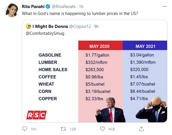 May 2020 isn’t a good comparison point especially for gas since we were (at least officially) under house arrest. But I’m sure May 2019 comparison would still have me missing Trump. Did we miss sort of new regulation on lumber harvesting? Or a big fire?