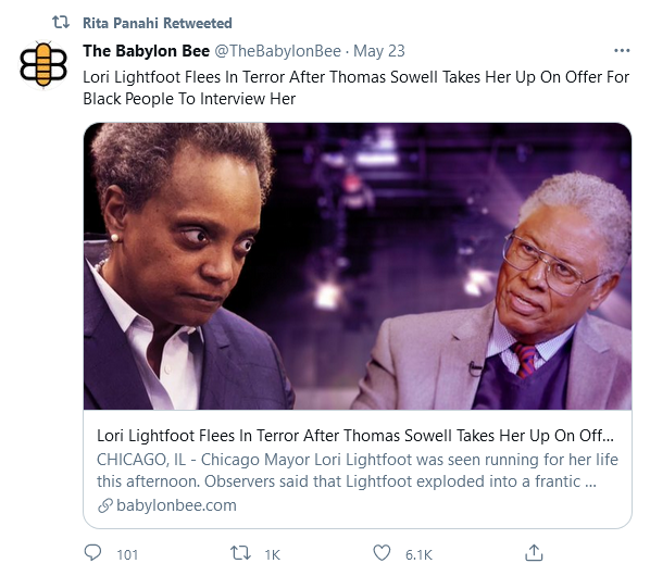 In a one-on-one interview, Thomas Sowell would crush Lightfoot like a bug.