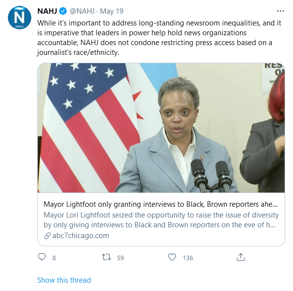 Nothing reverse about it, it is merely racism. The Democrat Party has a long history of fanning race hatred for political purposes. Thus it is for Mayor Lightfoot, the most incompetent mayor of Chicago in my lifetime, who is now engaging in white bashing to divert attention from her abysmal record. In the Jim Crow era South, white politicians would engage in black bashing when they were in political trouble. The colors change, but the despicable political tactic remains the same.