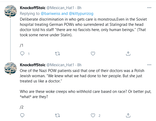 As another example of the generation gap, an ER doctor on the West Coast said he sees providers, particularly younger ones, applying antiracist principles in choosing how they allocate their time and which patients they choose to work with. “I’ve heard examples of Covid-19 cases in the emergency department where providers go, ‘I’m not going to go treat that white guy, I’m going to treat the person of color instead because whatever happened to the white guy, he probably deserves it.’”