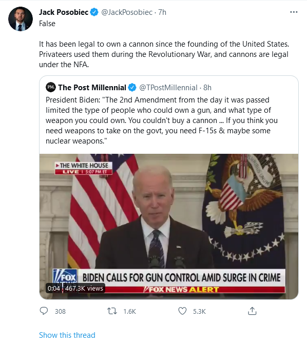 It is astonishing that an American politician would say what Biden just said— that the American people would need fighter jets and nuclear weapons to take him on. It sounds as if the fool is daring us to do something. It betrays a perverse attitude— it sounds like he sees the American people as subjects he’s ruling, not serving. And it sounds like he’s annoyed that we’re forgetting our place.