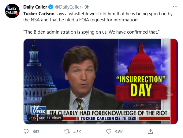 Tucker might well just gear up for that inevitable 4:00A.M. “surprise” visit from the SWAT teams, helicopters, canine units and of course, CNN camera crews at the ready. Something about a video of him crossing the double yellow line on a federal highway….