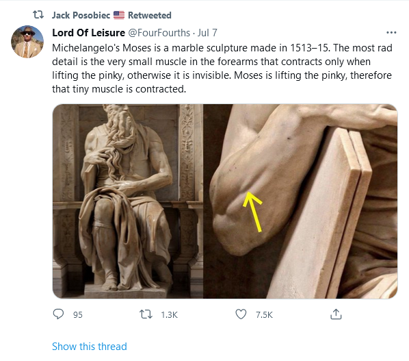 Just brilliant. Story has it that when Michelangelo completed the sculpture of the Pieta, he overheard people crediting the sculpture to Solari, a fellow artist at the time. So he went back and signed Our Lady’s sach with his name “Michelangelo Buonarroti, Florentine, was making this”…He later regretted this act of pride and vowed never to sign another artwork again. The Agony and the ecstasy truly describes this genius to tee. He genuinely used his talent to live out his vocation as an artist.