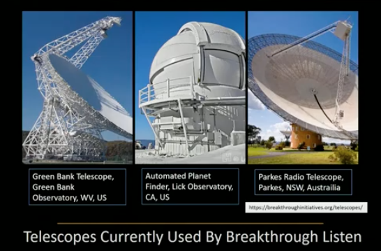 However, the detection of ETR signals has not been successful.  There have been “candidate signals,” strong signals far above noise level, like the WOW signal detected in 1977. But such signals have either been ascribed to natural (non-ETR) phenomena or have not been repeated and remain a mystery. Despite the lack of success, private funds (e.g. $100 million from the Russian capitalist, Yuri Milner, for “Breakthrough Listen”) are sustaining the search, using radio telescopes as shown below: