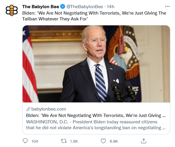 News Item: Washington, DC, 12:00 PM, 28 August 2021: “Due to impending landfall of Hurricane Idea, President Biden Issues Evaporation Order for low-lying areas of New Orleans. Blames George W. Bush in advance.” ..