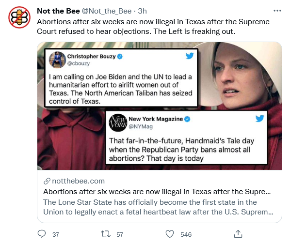 Total derangement as their “free sex without responsibility” way of life is called into question. Over at gunfreezone.net, there’s a screenshot of a tweet from some proggie Jewish woman claiming that the Texas law interferes with her right to practice Judaism. Seriously. One of the bloggers is himself Jewish and has a few choice words for that nonsense. SMH.