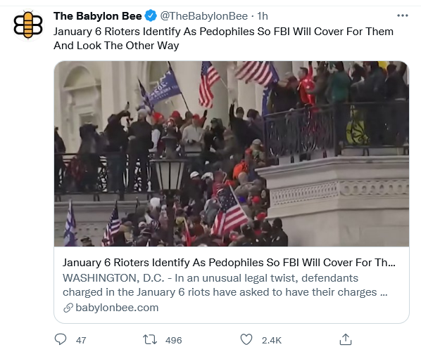 Several of those involved in the January 6th riots expressed discomfort at admitting to pedophilia, but the FBI was adamant that such an admission meant a free pass. “Look, I shattered a window, I deserved to get in trouble – but they were telling me I was staring down five years of jail time! Then my lawyer comes in and tells me if I just say I’m a pedophile, all of this can go away. Made me sick to my stomach, but I can’t go to jail. Got actual kids to take care of.”