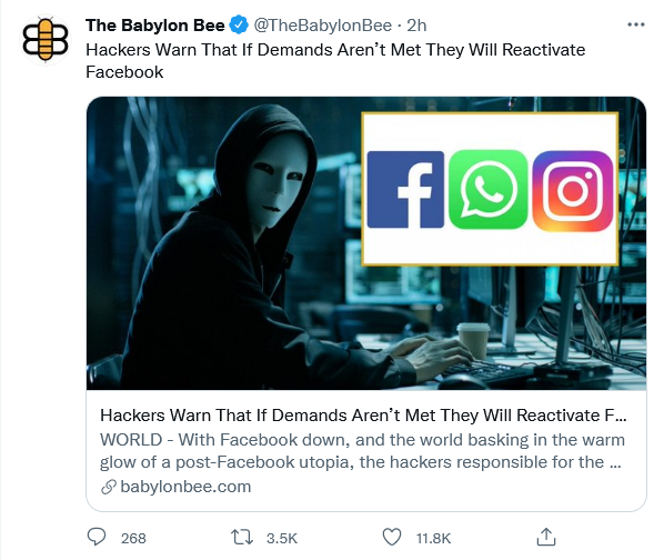 BTW, regarding this observation in the post: “Hmmm, Facebook and all of its apps going down simultaneously.”