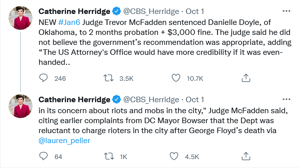 Or for that matter the Kavanaugh protesters who attempted to shut down and disrupt Congressional hearings in 2018. Good to see that at least one Judge, a Trump appointee, is pointing out that these prosecutions of the January 6 rioters are in the nature of political show trials.