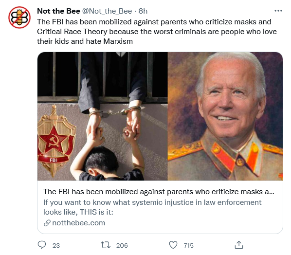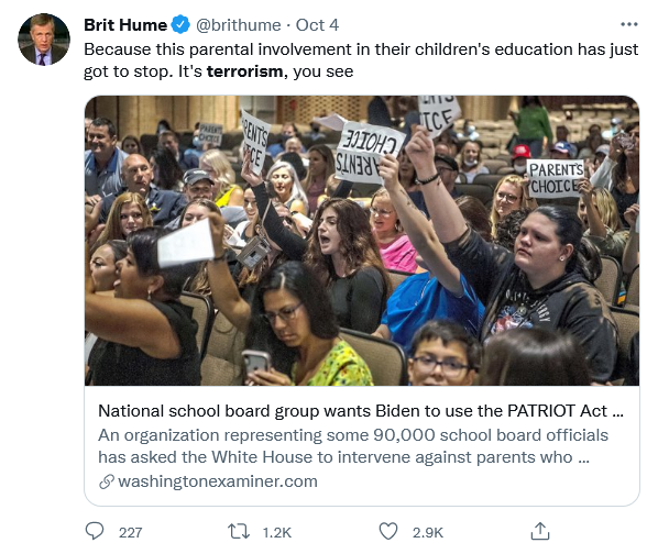 This came after Attorney General Merrick Garland directed the FBI to crack down on parents who violently and menacingly dare to question the holy authority of the state when it comes to educating kids.