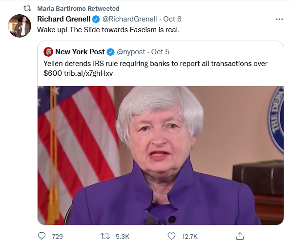 This would give the Feds constant notice of the balances in your bank accounts. Handy for the government that already has the right to garnish your bank accounts, without a court order, whenever they think you owe them money. Of course this would never, ever be abused by Washington to punish political opponents. Sure.