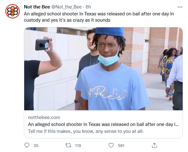 A school shooter is out on bail after a day in custody, and there are Jan. 6th DC protesters still in jail. Crazy.