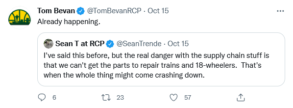 Per Sundance, the problem is California emissions standards, which effectively have precluded trucks not manufactured in the last three from traveling between the state line and the ports of Los Angeles and Long Beach. Since California’s environmental regulators are impeding interstate commerce to wretched effect, seems like something which could be properly over-ridden.