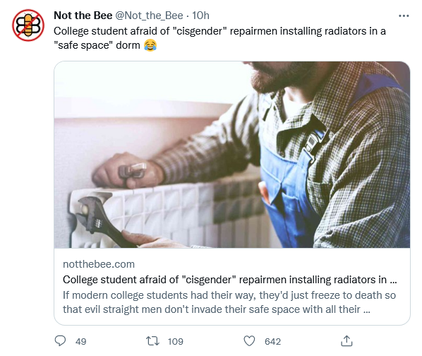 If modern college students had their way, they’d just freeze to death so that evil straight men don’t invade their safe space with all their craftsmanship and toxic masculinity and the like: