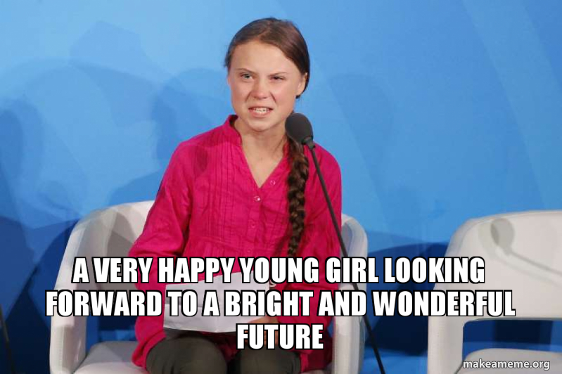 I feel so sorry for her. She apparently suffers from some kind of autism or OCD, and her inadequate schooling has convinced her that her terror may literally save the world. I don’t get a David Hogg vibe of opportunism from her. She’s probably never had an adult try to correct her course, at least not one that she didn’t see as evil. And at this point, she probably never will, because she can’t. She’ll likely never find happiness in anything, and never have a family of her own. Her life may be ruined.