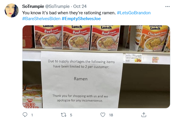 Imagine what the supply chains would be like if we had a war with China. Off-loading so much of our manufacturing to China and other foreign nations has been a disaster. We get cheaper goods at the expense of our labor force, a few mega corporations reap a massive windfall and we put ourselves at the mercy of any major global disruption. Folly on stilts. I am sure our Secretary of Transportation will get right on this, unless he decides to “have” another child with his “husband” and takes another two months paid paternity leave during this crisis.