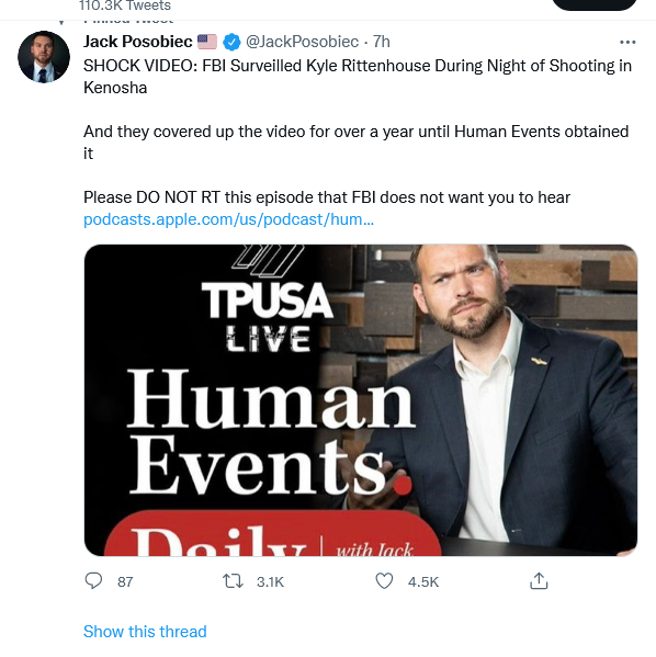 BREAKING: Human Events Daily has obtained never-before-seen FBI footage of the Kyle Rittenhouse Shootinghttps://t.co/QFAfI7mmJp pic.twitter.com/J8vOOoD3rg