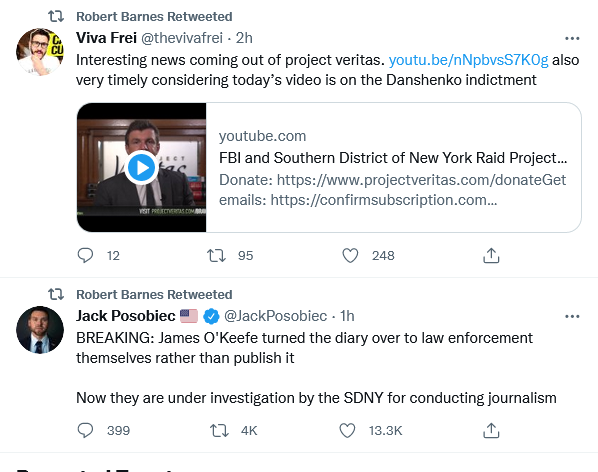 I feel as if I made a mistake and woke up in Russia or China. Gestapo FBI raiding Project Veritas about Biden’s daughter’s diary. It doesn’t get much more Kafkaesque than this. Journalists receive documents all the time. This is an attempt to read conservatives out of the protection of the First Amendment. Just what one would expect from the Puppetmaster’s Administration.