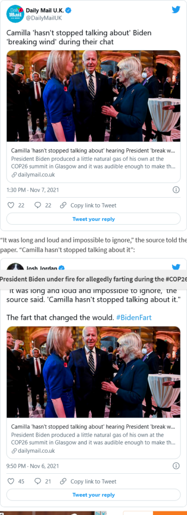 “She’s likely a woman of decorum and class in real time.” That’s up for debate. I wouldn’t rate her acting skills at public events and she isn’t exactly an oil painting. If the story said Camilla blew wind meeting Heads of State, I don’t think anyone would blink.