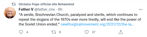 Gregory Dippipo at New Liturgical Movement nails this latest move in the war against traditional Catholicism by Pope Peron: