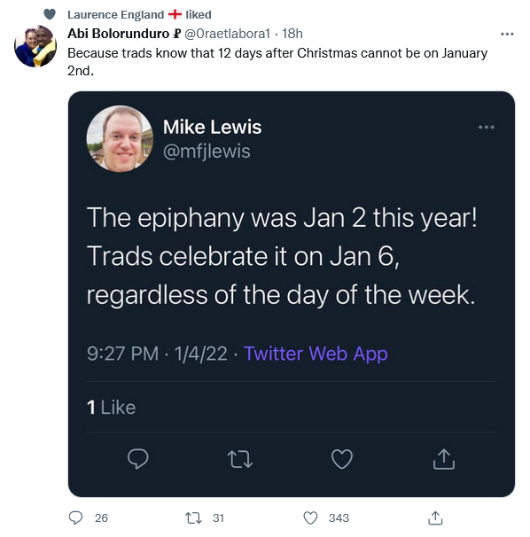 I celebrate Ephiphany today, Jan 6th, as the 12th day of Christmas. See here: