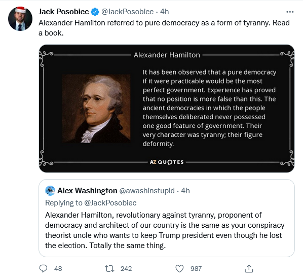 My favorite is: “Democracy is three wolves and a lamb debating what’s for dinner. “