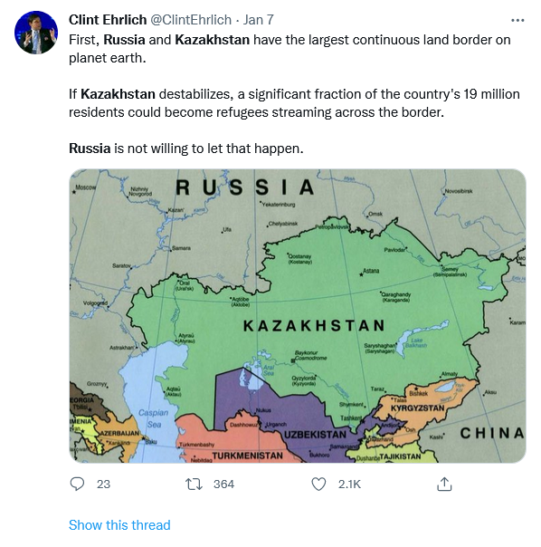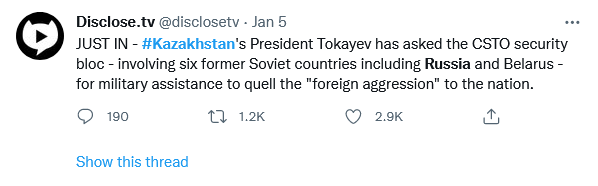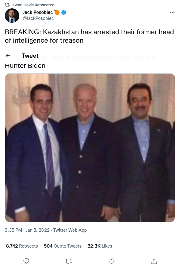 The government of Kazakhstan has been toppled by a revolt. Putin is sending his troops in to support the toppled regime.  Our Puppet-in-Chief is compromised due to the influence peddling of his son that the also profited from with a ten percent cut.  If Biden were not simply now a sock puppet for others now I would be more concerned about him being subject to blackmail.
