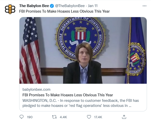 WASHINGTON, D.C.—In response to customer feedback, the FBI has pledged to make hoaxes or ‘red flag operations’ less obvious in 2022.