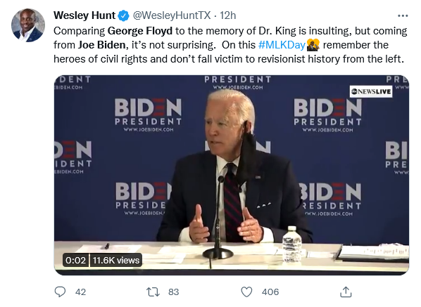 They want people judged by skin color. They want segregation and model criminality. So puppet Joe viscerally floats the idea that George Floyd was greater than Martin Luther king.