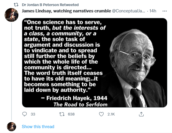 I find some areas, such as Hayek’s promotion of government run social security programs, to be highly problematic, in his work THE ROAD TO SERFDOM; however, in his quoting of Julien Benda regarding “the superstition of science held to be competent in all areas”, they both hit the bullseye. “Wanting to give the prestige of a scientific appearance to passions of their hearts” (or wallets).