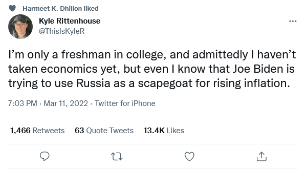 It’s okay that he hasn’t taken economics yet: it’s not like he’s going to learn anything substantial about inflation in a college economics course anyway.