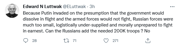 As I expected: Lt. Gen Ben Hodges (ret) on Fox News about 2pm EDT today also says the Russians are “ten days from exhausting their ammunition supplies.”