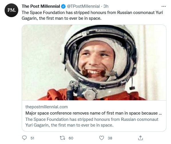 Yuri Gagarin was a hero. It doesn’t matter what side you’re on. What he did was positively heroic. Let’s remember his heroism instead of squabbling over who’s more evil: pro-abortion Biden or megalomaniac Putin.