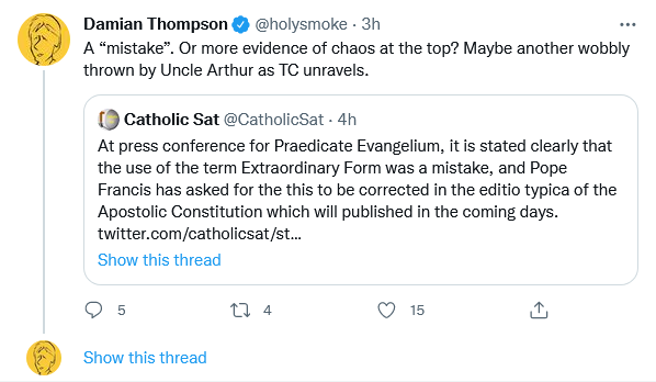I would be as happy as could be were this an actual reversal of any part of T.C. This could, however, just be sloppy work by the curial office that puts things in writing, as it’s part of an order assigning oversight of the EF to the dicastery for “evangelization”, which under this regime is a word nearly bereft of actual meaning.