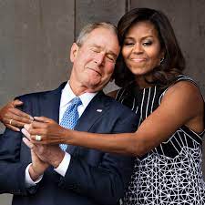 Bush lite has been a complete disappointment in retirement, but not that he wasn’t problematic before then. Compassionate conservatism? Conservatism, by definition, is compassionate. In retirement, though, the picture with the odious Michelle says it all. I really believe these folks hate this country.
