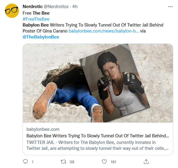 “Some of the most ruthless and dangerous people on the planet are residents here in Twitter Jail,” said Warden Parag Agrawal. “We have Trump and O’Keefe in isolation. Alex Jones is in and out of the hole… I would be very surprised if these Babylon Bee pests escaped.”