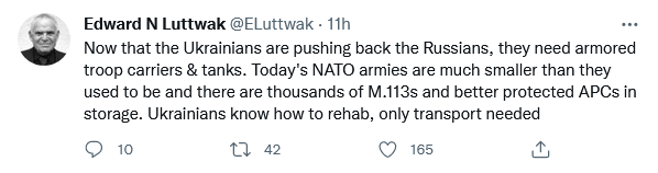 ISW seems awfully bellicose about Ukraine’s chances. I would say in baseball terms Ukraine is in the 5th inning and leads by 2 runs, but there is a lot of game to play.