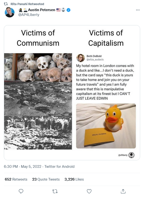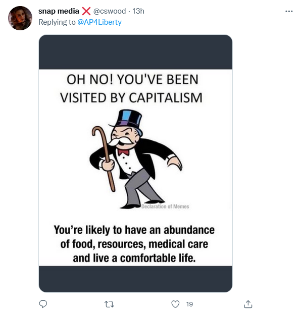 One problem with socialism and communism is concentration of power. Power is absolutized into an all powerful state. When businesses get large enough they start to have quasi-governmental powers. A lot of “woke” corporations are big business entities. In capitalism there is such a thing as economies of scale which can favor big business. Concentrations of unaccountable power can corrupt those who wield this power. The public and the private sector are equally capable of wrongdoing. Wall Street and Washington D.C. have both had their scandals. Big Tech is the true face of manipulative capitalism. The ruling class establishment elites live in their own bubble world that insulates them from the consequences of their actions. Rules for thee, but not for me. The CCP appears to be their role model. The CCP has adapted aspects of marketplace capitalism placed under state control.