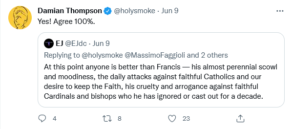 I’m not so sure Bergoglio, as bad as he is, is the worst of them. Many of those he’s placed in key positions are as bad as he is, maybe worse. I’ve said this before, but I think it bears repeating. Pope Francis is more the product of the rot in the Church than it’s cause.