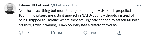 Go here to read the rest. As I already stated, this is becoming a war of materiel. NATO needs to have a central command to supply munitions and weapon systems to Ukraine.