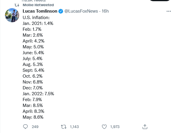 Art Laffer on Kudlow’s show blames the trillion dollar spending and the incompetent delayed inaction of Jerome Powell for the inflation wave and says it will hit double-digits by fall.